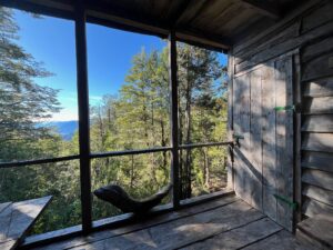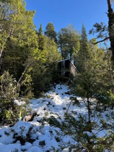 Para quienes buscan una experiencia auténtica y segura con conexión directa con la montaña. Es un refugio rústico para 8 personas, rodeado de un bello renoval de alerces y construido en madera nativa por carpinteros locales. Cuenta con cocina a leña, lavaplatos, un pequeño sistema fotovoltaico de 12v, equipo completo de cocina, 2 cocinillas “Wolf” de Doite para las cuales debes llevar tus gases mixtos, literas con colchonetas de espuma forrada para que duermas en tu propio saco de dormir, letrina exterior y una vista hermosa al Estuario Reloncaví. El Refugio también cuenta con señal 4G de Entel y próximamente contará con una estación de radio base para facilitar la comunicación mientras estás en ruta.